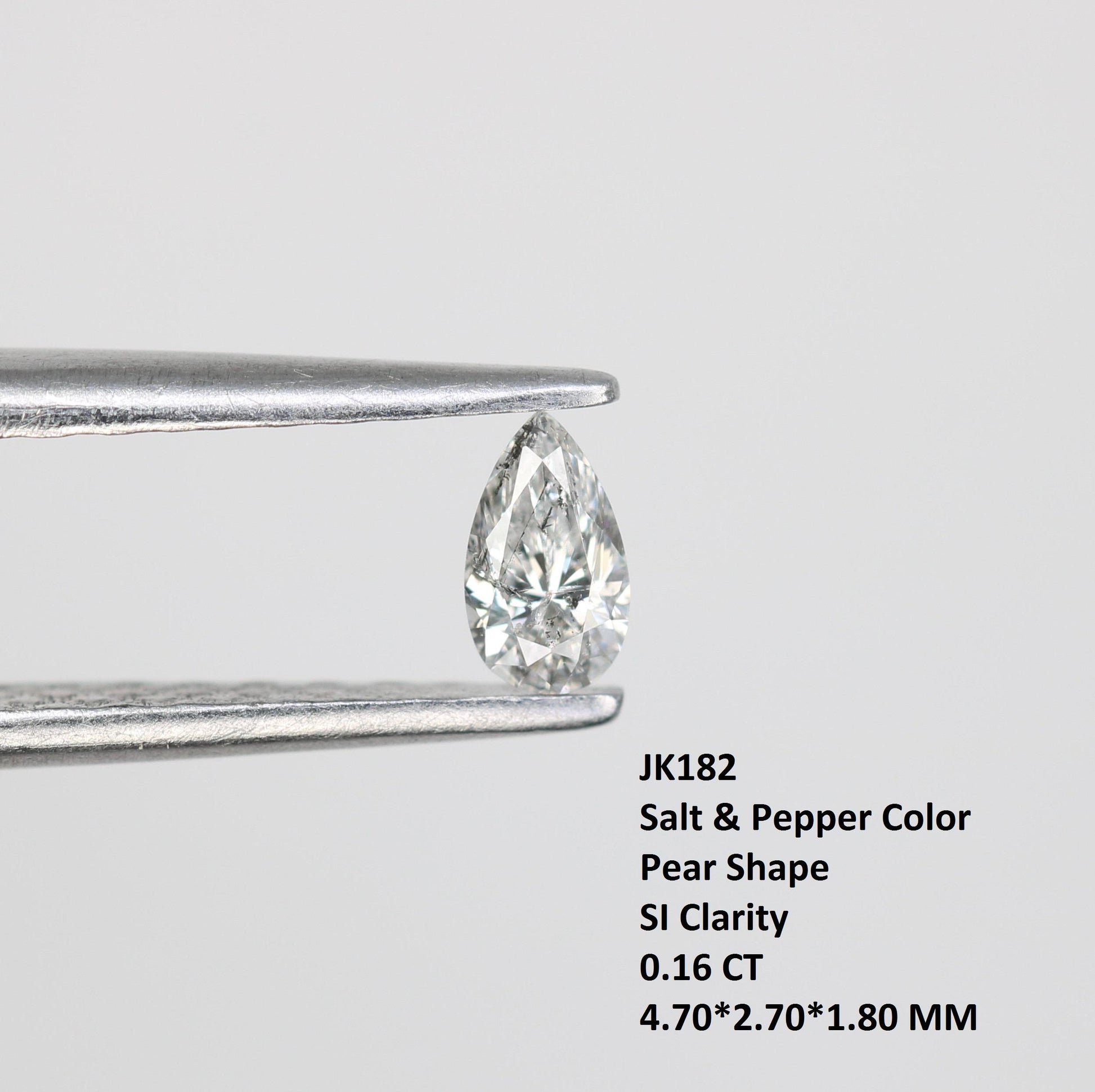 Type: Real Natural Salt And Pepper Diamond Weight: 0.16 Carats Shape: PEAR Size: 4.70*2.70*1.80 MM Clarity : SI Clouor : SALT AND PEPPER Pieces: 1 pc * How to Order* Browse Our Collection: Explore our range of natural diamonds, salt and pepper diamonds, gemstones, and handcrafted jewelry.Select Your Item: Click on your desired product to view details, including size, shape, and pricing.Add to Cart: Once you've made your selection, click "Add to Cart." You can adjust quantities or add additional items as needed.Checkout: When you're ready, click on your cart and proceed to checkout.Custom Orders Personalization Available: If youβd like a custom design or a specific gemstone, please contact us before placing your order.Consultation: Weβll work with you to understand your vision and provide a quote based on your requirements. Design Approval: Once we finalize the design, weβll send you a confirmation before beginning the crafting process.ShippingProcessing Time: Orders typically ship within [1-3 days]. Custom orders may take longer; weβll keep you updated on the timeline. Shipping Methods: We offer [standard/express] shipping options. Tracking information will be provided once your order ships. International Shipping: We happily ship worldwide. Please note that customs duties may apply depending on your location.Payment Secure Payments: We accept various payment methods, including credit/debit cards and PayPal, ensuring a safe and secure checkout experience. Payment Plans: For high-value items, we may offer flexible payment plans. Please inquire for details.Customer Support Questions? If you have any questions or need assistance, feel free to reach out via Etsy messages. Weβre here to help!Customer Satisfaction: Your happiness is our priority. If you have any concerns about your order, please contact us, and weβll do our best to resolve any issues. Thank you for choosing Rocks Diamond! We look forward to helping you find or create the perfect piece of jewelry.Thank you for Vist : rocksdiamond.etsy.comComplete your search for the perfect gift at RocksDiamond. Whether it's personalized gifts, elegant jewelry, or unique Christmas ornaments, our collection of natural diamonds offers something special for everyone. Ideal for gifts for him, birthday gifts, or the best gifts for her, every piece is crafted to make your moments unforgettable.
