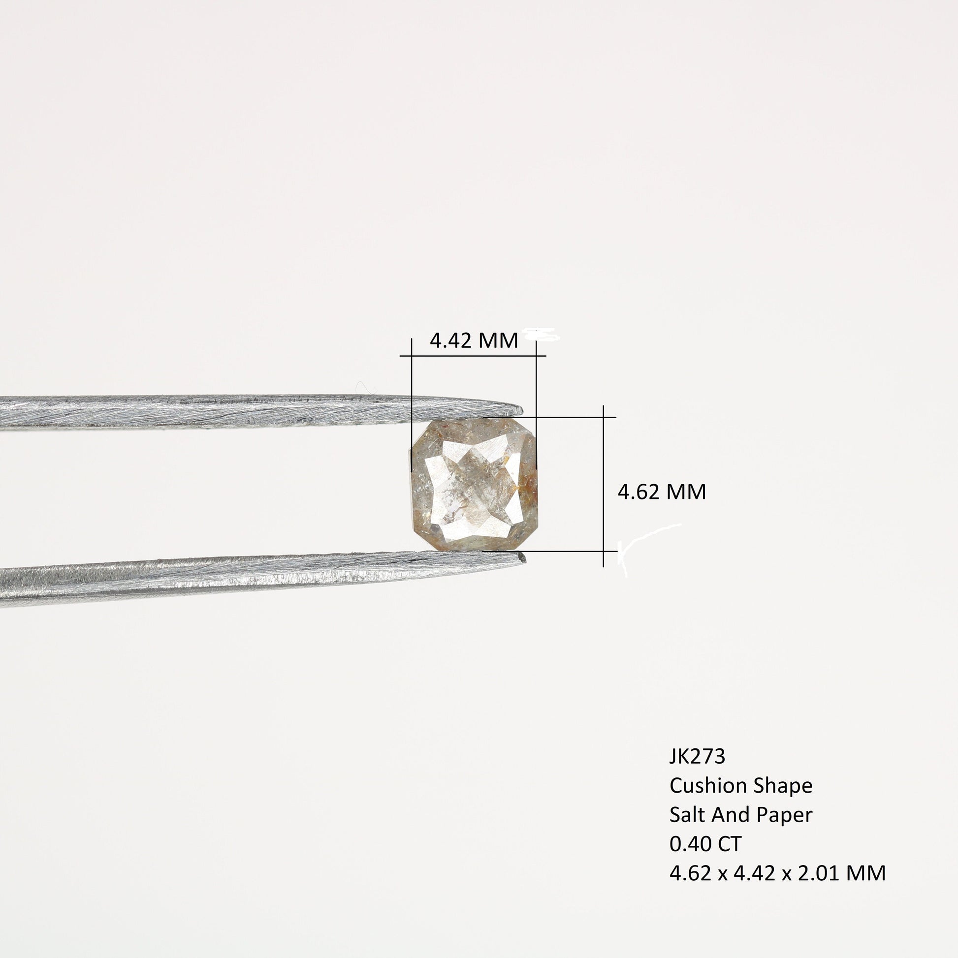 Type :- Real Natural Loose Diamond Weight :- 0.4 Carat Shape :- Cushion Shape Size :- 4.62 x 4.42 x 2.01 MM Color :- Salt And Pepper Clarity :- I3 Pieces :- 1 pcs Treatment :- None (100 % Natural Diamond) Use :- Customize Ring / Engagement Ring and Wedding Rings๐๐จ๐ฐ ๐ญ๐จ ๐๐ซ๐๐๐ซ ๐๐ฎ๐ฌ๐ญ๐จ๐ฆ ๐๐๐ฐ๐๐ฅ๐ฅ๐๐ซ๐ฒ ?? Do you looking special and unique piece ? Do you have pictures, sketch or just idea ? Just Send Us! Let's design together and create the jewel of your dreams with best prices. Thank You so much for visiting my shop..... https://rocksdiamond.etsy.comThank You For Reach out RocksDiamond rocksdiamond.etsy.com Hello Friends,Welcome to Rocks Diamond, the complete store of Natural and Salt Pepper Diamonds, Rough Diamonds, gemstones, beads and high quality jewelry supplies with therapeutic values. * How to Order* Browse Our Collection: Explore our range of natural diamonds, salt and pepper diamonds, gemstones, and handcrafted jewelry.Select Your Item: Click on your desired product to view details, including size, shape, and pricing.Add to Cart: Once you've made your selection, click "Add to Cart." You can adjust quantities or add additional items as needed.Checkout: When you're ready, click on your cart and proceed to checkout.Custom Orders Personalization Available: If youโd like a custom design or a specific gemstone, please contact us before placing your order.Consultation: Weโll work with you to understand your vision and provide a quote based on your requirements. Design Approval: Once we finalize the design, weโll send you a confirmation before beginning the crafting process.ShippingProcessing Time: Orders typically ship within [1-3 days]. Custom orders may take longer; weโll keep you updated on the timeline. Shipping Methods: We offer [standard/express] shipping options. Tracking information will be provided once your order ships. International Shipping: We happily ship worldwide. Please note that customs duties may apply depending on your location.Payment Secure Payments: We accept various payment methods, including credit/debit cards and PayPal, ensuring a safe and secure checkout experience. Payment Plans: For high-value items, we may offer flexible payment plans. Please inquire for details.Customer Support Questions? If you have any questions or need assistance, feel free to reach out via Etsy messages. Weโre here to help!Customer Satisfaction: Your happiness is our priority. If you have any concerns about your order, please contact us, and weโll do our best to resolve any issues. Thank you for choosing Rocks Diamond! We look forward to helping you find or create the perfect piece of jewelry.Thank you for Vist : rocksdiamond.etsy.comComplete your search for the perfect gift at RocksDiamond. Whether it's personalized gifts, elegant jewelry, or unique Christmas ornaments, our collection of natural diamonds offers something special for everyone. Ideal for gifts for him, birthday gifts, or the best gifts for her, every piece is crafted to make your moments unforgettable.