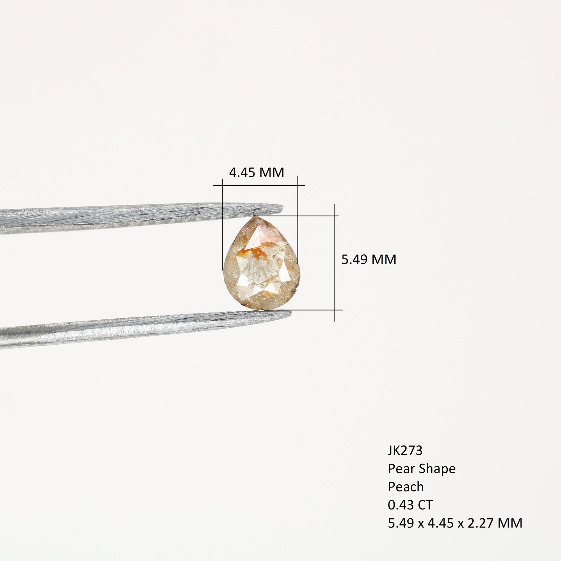 Type :- Real Natural Loose Diamond Weight :- 0.43 Carat Shape :- Pear Shape Size :- 5.49 x 4.45 x 2.27 MM Color :- Peach Clarity :- I3 Pieces :- 1 pcs Treatment :- None (100 % Natural Diamond) Use :- Customize Ring / Engagement Ring and Wedding Rings๐๐จ๐ฐ ๐ญ๐จ ๐๐ซ๐๐๐ซ ๐๐ฎ๐ฌ๐ญ๐จ๐ฆ ๐๐๐ฐ๐๐ฅ๐ฅ๐๐ซ๐ฒ ?? Do you looking special and unique piece ? Do you have pictures, sketch or just idea ? Just Send Us! Let's design together and create the jewel of your dreams with best prices. Thank You so much Kind Regards, Rocksdiamond Team.... https://rocksdiamond.etsy.comThank You For Reach out RocksDiamond rocksdiamond.etsy.com Hello Friends,Welcome to Rocks Diamond, the complete store of Natural and Salt Pepper Diamonds, Rough Diamonds, gemstones, beads and high quality jewelry supplies with therapeutic values. * How to Order* Browse Our Collection: Explore our range of natural diamonds, salt and pepper diamonds, gemstones, and handcrafted jewelry.Select Your Item: Click on your desired product to view details, including size, shape, and pricing.Add to Cart: Once you've made your selection, click "Add to Cart." You can adjust quantities or add additional items as needed.Checkout: When you're ready, click on your cart and proceed to checkout.Custom Orders Personalization Available: If youโd like a custom design or a specific gemstone, please contact us before placing your order.Consultation: Weโll work with you to understand your vision and provide a quote based on your requirements. Design Approval: Once we finalize the design, weโll send you a confirmation before beginning the crafting process.ShippingProcessing Time: Orders typically ship within [1-3 days]. Custom orders may take longer; weโll keep you updated on the timeline. Shipping Methods: We offer [standard/express] shipping options. Tracking information will be provided once your order ships. International Shipping: We happily ship worldwide. Please note that customs duties may apply depending on your location.Payment Secure Payments: We accept various payment methods, including credit/debit cards and PayPal, ensuring a safe and secure checkout experience. Payment Plans: For high-value items, we may offer flexible payment plans. Please inquire for details.Customer Support Questions? If you have any questions or need assistance, feel free to reach out via Etsy messages. Weโre here to help!Customer Satisfaction: Your happiness is our priority. If you have any concerns about your order, please contact us, and weโll do our best to resolve any issues. Thank you for choosing Rocks Diamond! We look forward to helping you find or create the perfect piece of jewelry.Thank you for Vist : rocksdiamond.etsy.comComplete your search for the perfect gift at RocksDiamond. Whether it's personalized gifts, elegant jewelry, or unique Christmas ornaments, our collection of natural diamonds offers something special for everyone. Ideal for gifts for him, birthday gifts, or the best gifts for her, every piece is crafted to make your moments unforgettable.