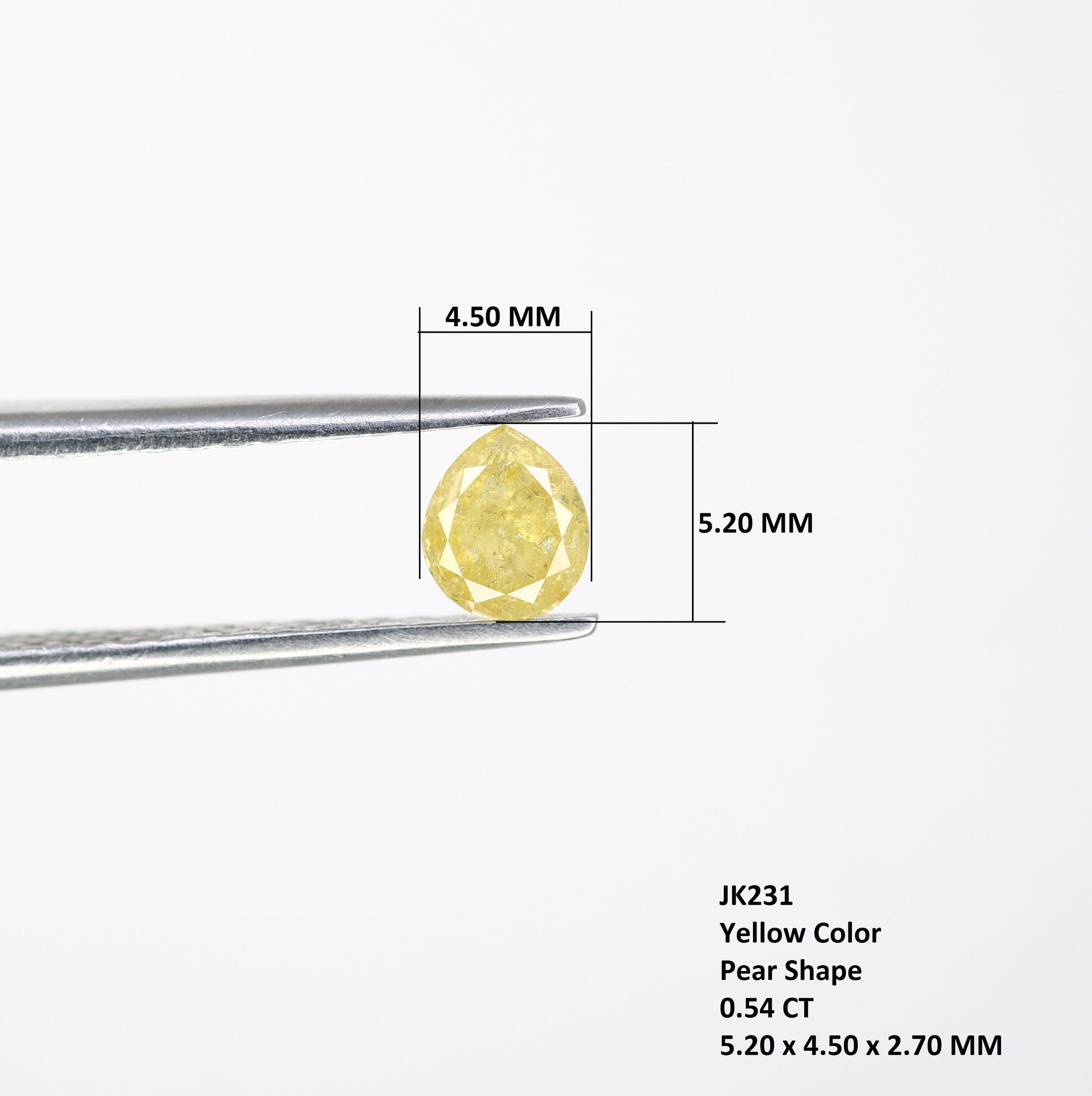 Type :- Real Natural Loose Diamond Weight :- 0.54 Carat Shape :- Pear Size :- 5.20 x 4.50 x 2.70 MM Color :- Yellow Clarity :- I3 Cut :- Good Pieces :- 1 pcs Treatment :- Diamond is 100 % Natural Use :- Customize ring / Engagement Ring and Wedding Rings* How to Order* Browse Our Collection: Explore our range of natural diamonds, salt and pepper diamonds, gemstones, and handcrafted jewelry.Select Your Item: Click on your desired product to view details, including size, shape, and pricing.Add to Cart: Once you've made your selection, click "Add to Cart." You can adjust quantities or add additional items as needed.Checkout: When you're ready, click on your cart and proceed to checkout.Custom Orders Personalization Available: If youβd like a custom design or a specific gemstone, please contact us before placing your order.Consultation: Weβll work with you to understand your vision and provide a quote based on your requirements. Design Approval: Once we finalize the design, weβll send you a confirmation before beginning the crafting process.ShippingProcessing Time: Orders typically ship within [1-3 days]. Custom orders may take longer; weβll keep you updated on the timeline. Shipping Methods: We offer [standard/express] shipping options. Tracking information will be provided once your order ships. International Shipping: We happily ship worldwide. Please note that customs duties may apply depending on your location.Payment Secure Payments: We accept various payment methods, including credit/debit cards and PayPal, ensuring a safe and secure checkout experience. Payment Plans: For high-value items, we may offer flexible payment plans. Please inquire for details.Customer Support Questions? If you have any questions or need assistance, feel free to reach out via Etsy messages. Weβre here to help!Customer Satisfaction: Your happiness is our priority. If you have any concerns about your order, please contact us, and weβll do our best to resolve any issues. Thank you for choosing Rocks Diamond! We look forward to helping you find or create the perfect piece of jewelry.Thank you for Vist : rocksdiamond.etsy.comComplete your search for the perfect gift at RocksDiamond. Whether it's personalized gifts, elegant jewelry, or unique Christmas ornaments, our collection of natural diamonds offers something special for everyone. Ideal for gifts for him, birthday gifts, or the best gifts for her, every piece is crafted to make your moments unforgettable.