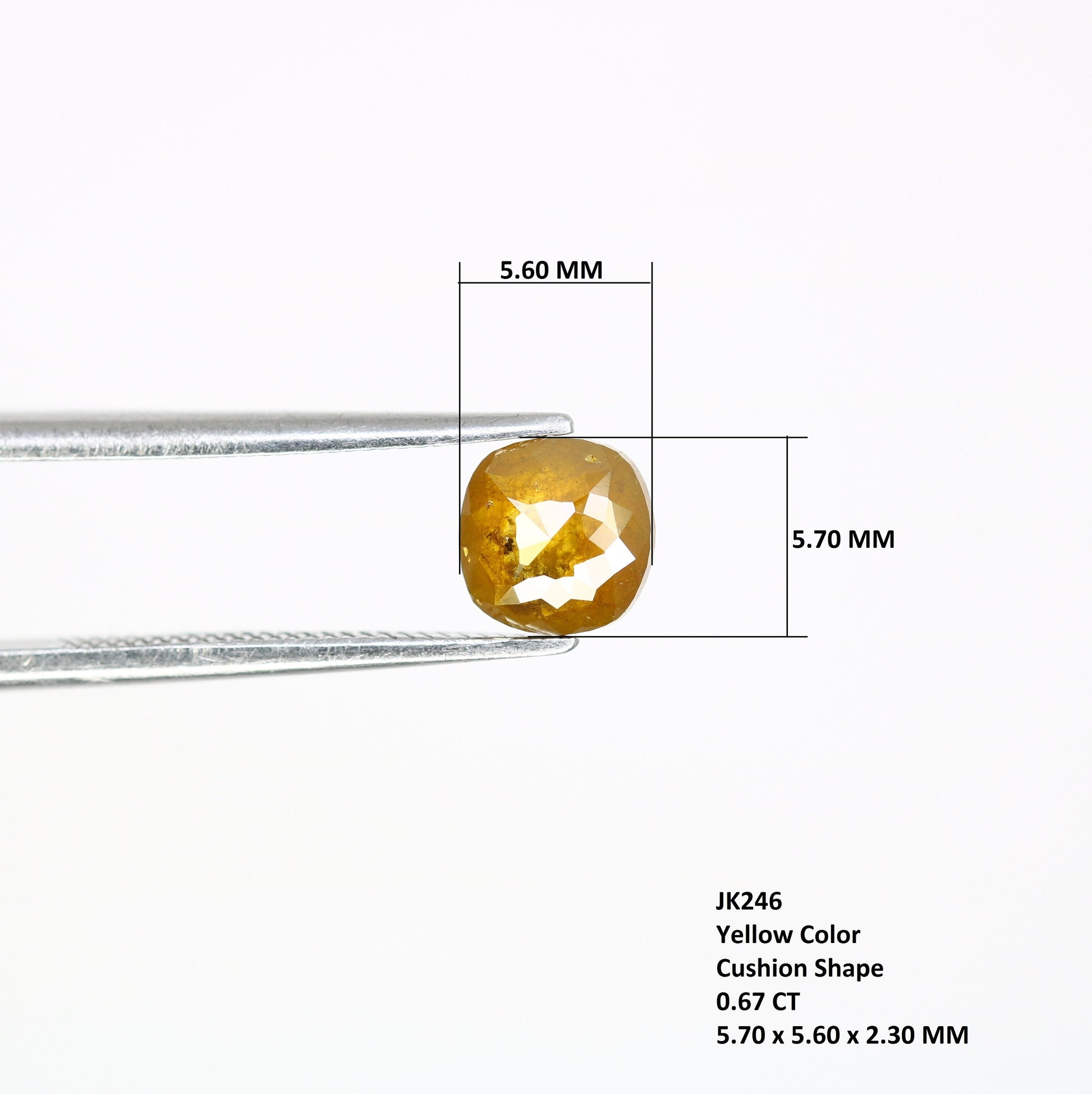 Type :- 100% Real Diamond Color :- Yellow Shape :- Cushion Weight :- 0.67 Carat Size :- 5.70 x 5.60 x 2.30 MM Pieces :- 1 Pcs Loose Diamond Use :- Yellow Cushion Cut Diamond Statement Ring https://rocksdiamond.etsy.comThank You For Reach out RocksDiamond rocksdiamond.etsy.com Hello Friends,Welcome to Rocks Diamond, the complete store of Natural and Salt Pepper Diamonds, Rough Diamonds, gemstones, beads and high quality jewelry supplies with therapeutic values. * How to Order* Browse Our Collection: Explore our range of natural diamonds, salt and pepper diamonds, gemstones, and handcrafted jewelry.Select Your Item: Click on your desired product to view details, including size, shape, and pricing.Add to Cart: Once you've made your selection, click "Add to Cart." You can adjust quantities or add additional items as needed.Checkout: When you're ready, click on your cart and proceed to checkout.Custom Orders Personalization Available: If youβd like a custom design or a specific gemstone, please contact us before placing your order.Consultation: Weβll work with you to understand your vision and provide a quote based on your requirements. Design Approval: Once we finalize the design, weβll send you a confirmation before beginning the crafting process.ShippingProcessing Time: Orders typically ship within [1-3 days]. Custom orders may take longer; weβll keep you updated on the timeline. Shipping Methods: We offer [standard/express] shipping options. Tracking information will be provided once your order ships. International Shipping: We happily ship worldwide. Please note that customs duties may apply depending on your location.Payment Secure Payments: We accept various payment methods, including credit/debit cards and PayPal, ensuring a safe and secure checkout experience. Payment Plans: For high-value items, we may offer flexible payment plans. Please inquire for details.Customer Support Questions? If you have any questions or need assistance, feel free to reach out via Etsy messages. Weβre here to help!Customer Satisfaction: Your happiness is our priority. If you have any concerns about your order, please contact us, and weβll do our best to resolve any issues. Thank you for choosing Rocks Diamond! We look forward to helping you find or create the perfect piece of jewelry.Thank you for Vist : rocksdiamond.etsy.comComplete your search for the perfect gift at RocksDiamond. Whether it's personalized gifts, elegant jewelry, or unique Christmas ornaments, our collection of natural diamonds offers something special for everyone. Ideal for gifts for him, birthday gifts, or the best gifts for her, every piece is crafted to make your moments unforgettable.