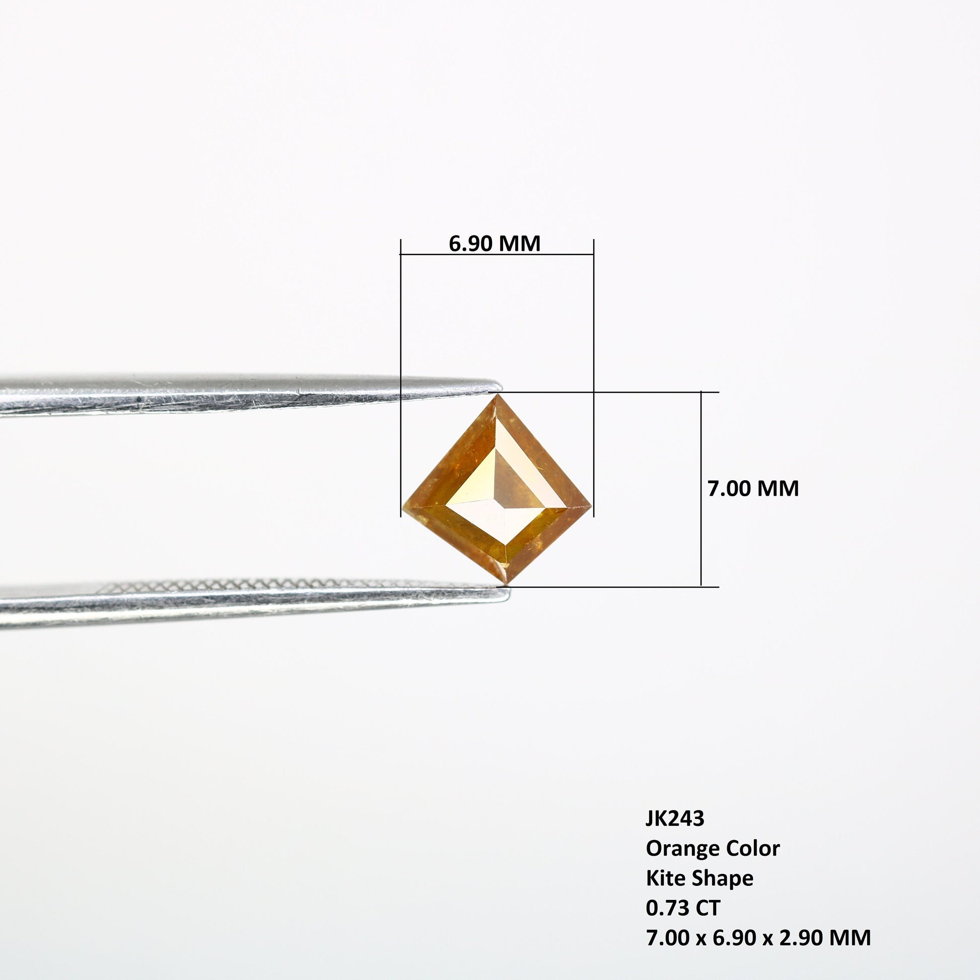 Type :- 100% Real Diamond Shape :- Kite Weight :- 0.73 Carat Color :- Orange Pieces :- 1pcs Loose Diamond Size :- 7.00 x 6.90 x 2.90 MM Thank you so much for visiting my store..... https://rocksdiamond.etsy.comThank You For Reach out RocksDiamond rocksdiamond.etsy.com Hello Friends,Welcome to Rocks Diamond, the complete store of Natural and Salt Pepper Diamonds, Rough Diamonds, gemstones, beads and high quality jewelry supplies with therapeutic values. * How to Order* Browse Our Collection: Explore our range of natural diamonds, salt and pepper diamonds, gemstones, and handcrafted jewelry.Select Your Item: Click on your desired product to view details, including size, shape, and pricing.Add to Cart: Once you've made your selection, click "Add to Cart." You can adjust quantities or add additional items as needed.Checkout: When you're ready, click on your cart and proceed to checkout.Custom Orders Personalization Available: If youβd like a custom design or a specific gemstone, please contact us before placing your order.Consultation: Weβll work with you to understand your vision and provide a quote based on your requirements. Design Approval: Once we finalize the design, weβll send you a confirmation before beginning the crafting process.ShippingProcessing Time: Orders typically ship within [1-3 days]. Custom orders may take longer; weβll keep you updated on the timeline. Shipping Methods: We offer [standard/express] shipping options. Tracking information will be provided once your order ships. International Shipping: We happily ship worldwide. Please note that customs duties may apply depending on your location.Payment Secure Payments: We accept various payment methods, including credit/debit cards and PayPal, ensuring a safe and secure checkout experience. Payment Plans: For high-value items, we may offer flexible payment plans. Please inquire for details.Customer Support Questions? If you have any questions or need assistance, feel free to reach out via Etsy messages. Weβre here to help!Customer Satisfaction: Your happiness is our priority. If you have any concerns about your order, please contact us, and weβll do our best to resolve any issues. Thank you for choosing Rocks Diamond! We look forward to helping you find or create the perfect piece of jewelry.Thank you for Vist : rocksdiamond.etsy.comComplete your search for the perfect gift at RocksDiamond. Whether it's personalized gifts, elegant jewelry, or unique Christmas ornaments, our collection of natural diamonds offers something special for everyone. Ideal for gifts for him, birthday gifts, or the best gifts for her, every piece is crafted to make your moments unforgettable.