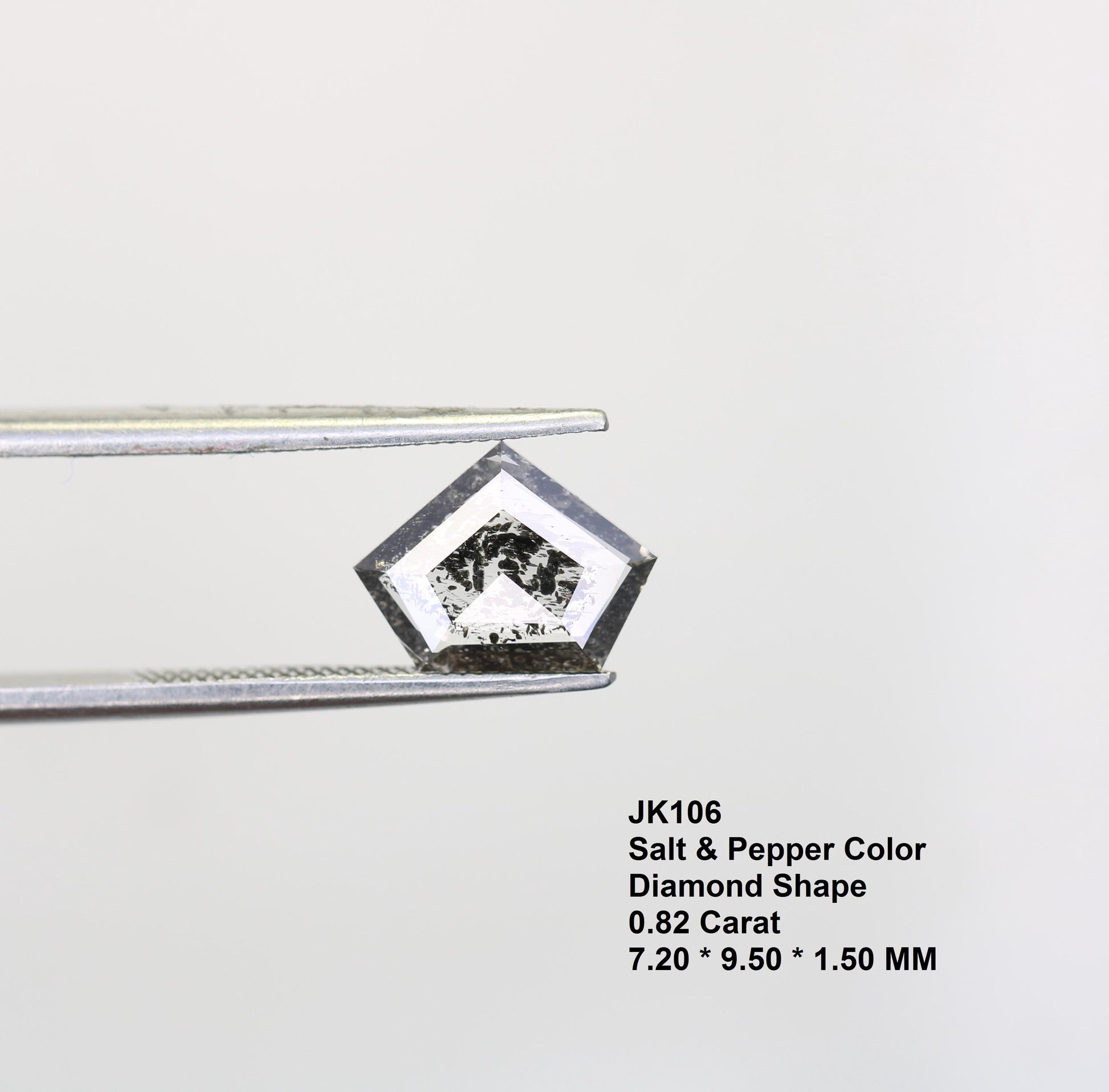 Type: Real Natural Salt And Pepper Diamond Weight: 0.82 Carats Shape: DIAMOND Size: 7.20*9.50*1.50 MM Clarity : OPAQUE Clouor : SALT AND PEPPER Pieces: 1 pc * How to Order* Browse Our Collection: Explore our range of natural diamonds, salt and pepper diamonds, gemstones, and handcrafted jewelry.Select Your Item: Click on your desired product to view details, including size, shape, and pricing.Add to Cart: Once you've made your selection, click "Add to Cart." You can adjust quantities or add additional items as needed.Checkout: When you're ready, click on your cart and proceed to checkout.Custom Orders Personalization Available: If youβd like a custom design or a specific gemstone, please contact us before placing your order.Consultation: Weβll work with you to understand your vision and provide a quote based on your requirements. Design Approval: Once we finalize the design, weβll send you a confirmation before beginning the crafting process.ShippingProcessing Time: Orders typically ship within [1-3 days]. Custom orders may take longer; weβll keep you updated on the timeline. Shipping Methods: We offer [standard/express] shipping options. Tracking information will be provided once your order ships. International Shipping: We happily ship worldwide. Please note that customs duties may apply depending on your location.Payment Secure Payments: We accept various payment methods, including credit/debit cards and PayPal, ensuring a safe and secure checkout experience. Payment Plans: For high-value items, we may offer flexible payment plans. Please inquire for details.Customer Support Questions? If you have any questions or need assistance, feel free to reach out via Etsy messages. Weβre here to help!Customer Satisfaction: Your happiness is our priority. If you have any concerns about your order, please contact us, and weβll do our best to resolve any issues. Thank you for choosing Rocks Diamond! We look forward to helping you find or create the perfect piece of jewelry.Thank you for Vist : rocksdiamond.etsy.comComplete your search for the perfect gift at RocksDiamond. Whether it's personalized gifts, elegant jewelry, or unique Christmas ornaments, our collection of natural diamonds offers something special for everyone. Ideal for gifts for him, birthday gifts, or the best gifts for her, every piece is crafted to make your moments unforgettable.