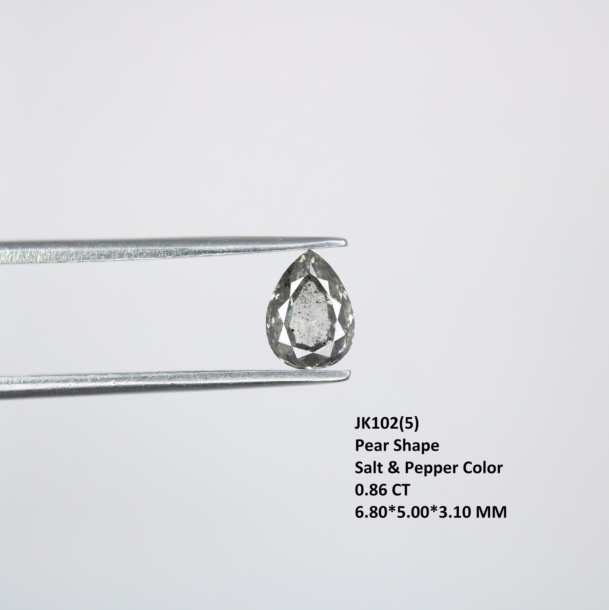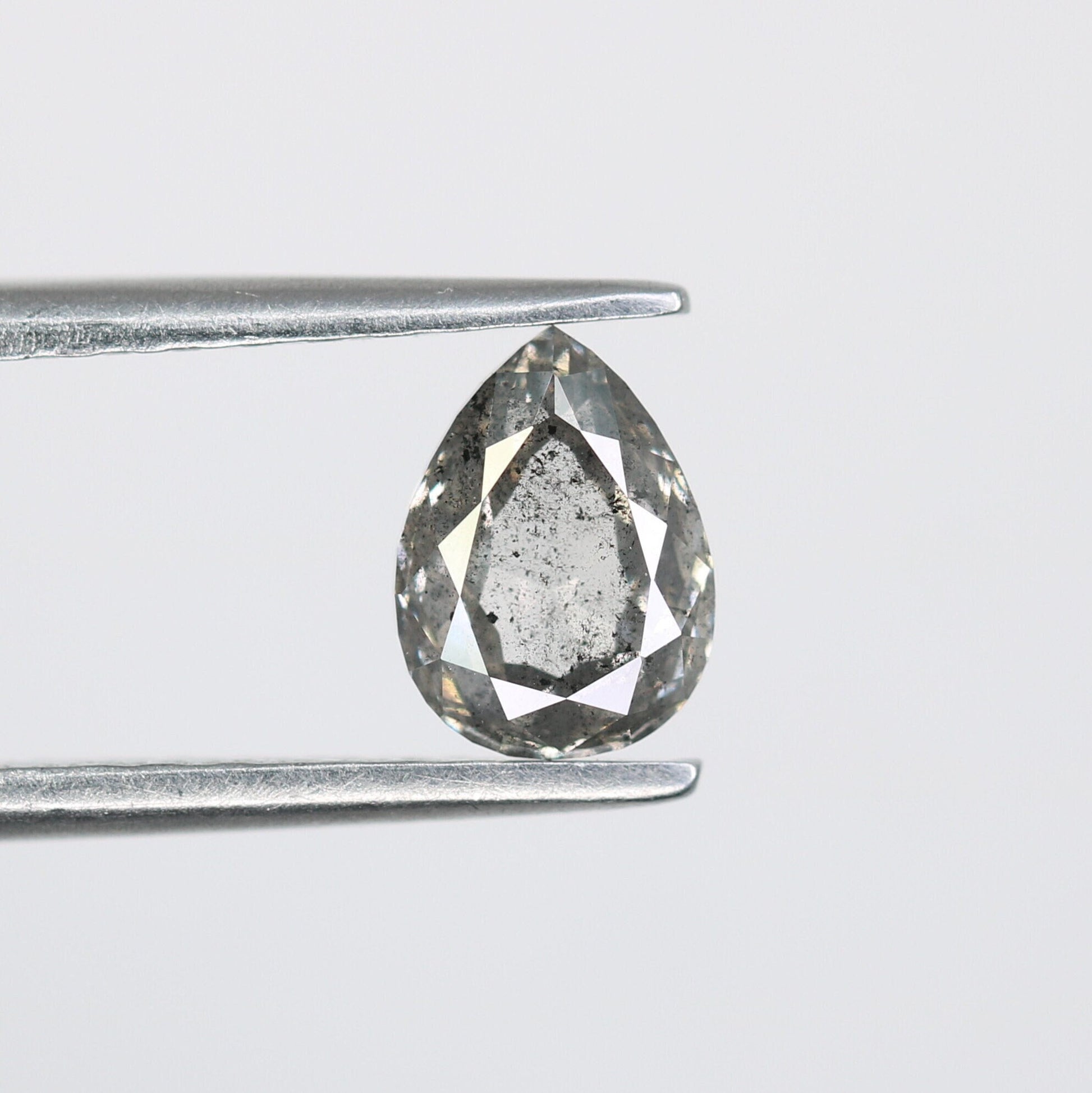 0.86 CT Natural Pear Shape Salt and Pepper Rustic Diamond | Custom Engagement Ring Gem | Pear Bezel Set Design | Perfect Gift for Wife