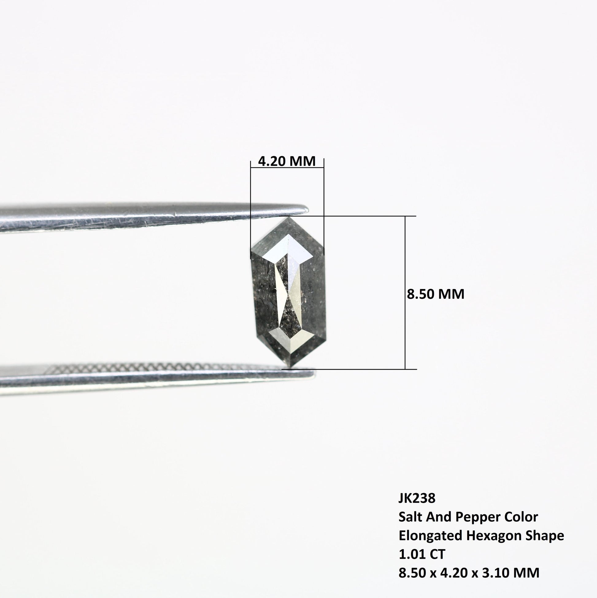 Type: Real Natural Salt And Pepper Diamond Weight: 1.01 Carats Shape: ELONGATED HEXAGON Size: 8.50*4.20*3.10 MM Clarity : OPAQUE Clouor : SALT AND PEPPER Pieces: 1 pc✨ Perfect for: Custom Engagement Rings, Unique Wedding Bands, and Personalized Jewelry 🌟 𝐇𝐨𝐰 𝐭𝐨 𝐎𝐫𝐝𝐞𝐫 𝐂𝐮𝐬𝐭𝐨𝐦 𝐉𝐞𝐰𝐞𝐥𝐥𝐞𝐫𝐲? Looking for a special, one-of-a-kind piece? Whether you have images, sketches, or just a concept in mind, send us your ideas! Let's collaborate to design the jewel of your dreams at the best prices.🌐 𝑽𝒊𝒔𝒊𝒕 𝑴𝒚 𝑺𝒕𝒐𝒓𝒆: RocksDiamond on EtsyThank you so much for considering RocksDiamond! Kind Regards, The RocksDiamond Team rocksdiamond.etsy.comComplete your search for the perfect gift at RocksDiamond. Whether it's personalized gifts, elegant jewelry, or unique Christmas ornaments, our collection of natural diamonds offers something special for everyone. Ideal for gifts for him, birthday gifts, or the best gifts for her, every piece is crafted to make your moments unforgettable.