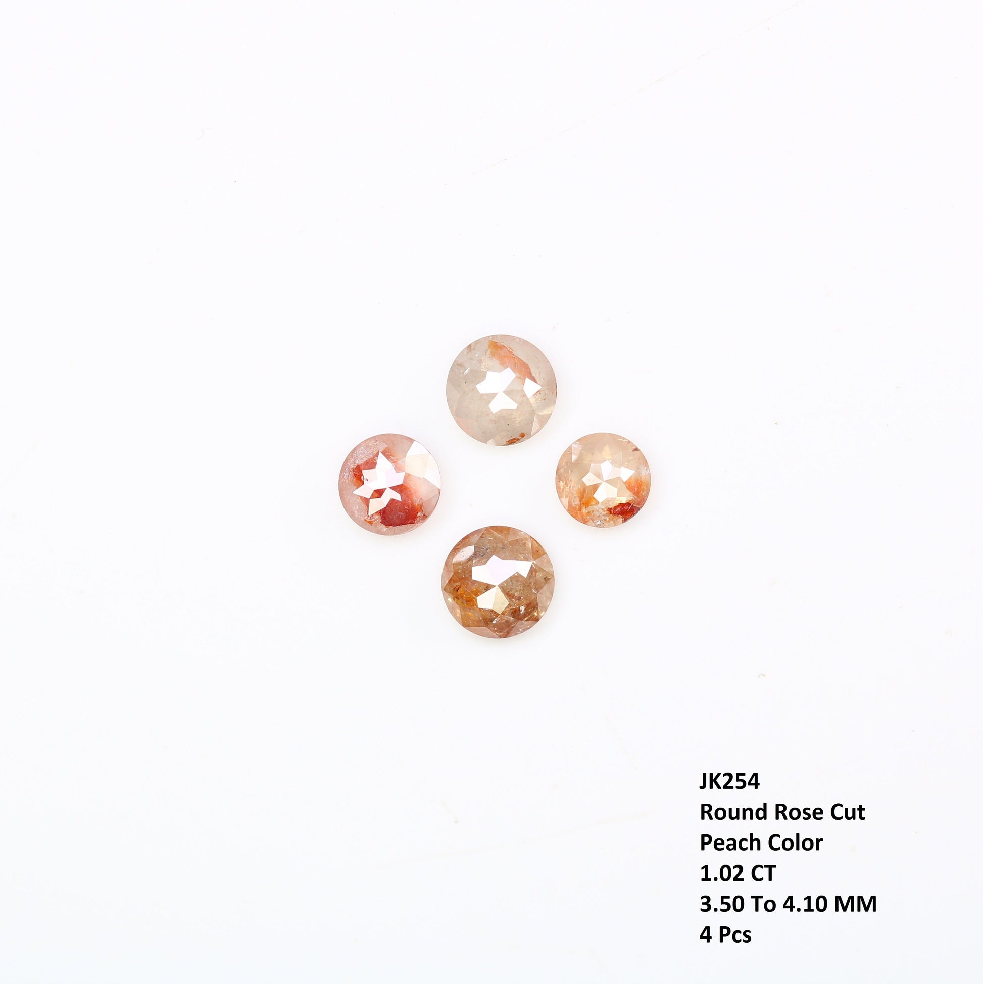Type :- 100% Real Natural Diamond Color :- Peach Cut :- Rose Cut Shape :- Round Weight :- 1.02 Carat Size :- 3.50 To 4.10 MM Pieces :- 4 Pcs Loose Diamond Use :- Rose Cut Peach Diamond Engagement RingThank You So Much For Visiting My Store.β€οΈ https://rocksdiamond.etsy.comThank You For Reach out RocksDiamond rocksdiamond.etsy.com Hello Friends,Welcome to Rocks Diamond, the complete store of Natural and Salt Pepper Diamonds, Rough Diamonds, gemstones, beads and high quality jewelry supplies with therapeutic values. * How to Order* Browse Our Collection: Explore our range of natural diamonds, salt and pepper diamonds, gemstones, and handcrafted jewelry.Select Your Item: Click on your desired product to view details, including size, shape, and pricing.Add to Cart: Once you've made your selection, click "Add to Cart." You can adjust quantities or add additional items as needed.Checkout: When you're ready, click on your cart and proceed to checkout.Custom Orders Personalization Available: If youβd like a custom design or a specific gemstone, please contact us before placing your order.Consultation: Weβll work with you to understand your vision and provide a quote based on your requirements. Design Approval: Once we finalize the design, weβll send you a confirmation before beginning the crafting process.ShippingProcessing Time: Orders typically ship within [1-3 days]. Custom orders may take longer; weβll keep you updated on the timeline. Shipping Methods: We offer [standard/express] shipping options. Tracking information will be provided once your order ships. International Shipping: We happily ship worldwide. Please note that customs duties may apply depending on your location.Payment Secure Payments: We accept various payment methods, including credit/debit cards and PayPal, ensuring a safe and secure checkout experience. Payment Plans: For high-value items, we may offer flexible payment plans. Please inquire for details.Customer Support Questions? If you have any questions or need assistance, feel free to reach out via Etsy messages. Weβre here to help!Customer Satisfaction: Your happiness is our priority. If you have any concerns about your order, please contact us, and weβll do our best to resolve any issues. Thank you for choosing Rocks Diamond! We look forward to helping you find or create the perfect piece of jewelry.Thank you for Vist : rocksdiamond.etsy.comComplete your search for the perfect gift at RocksDiamond. Whether it's personalized gifts, elegant jewelry, or unique Christmas ornaments, our collection of natural diamonds offers something special for everyone. Ideal for gifts for him, birthday gifts, or the best gifts for her, every piece is crafted to make your moments unforgettable.