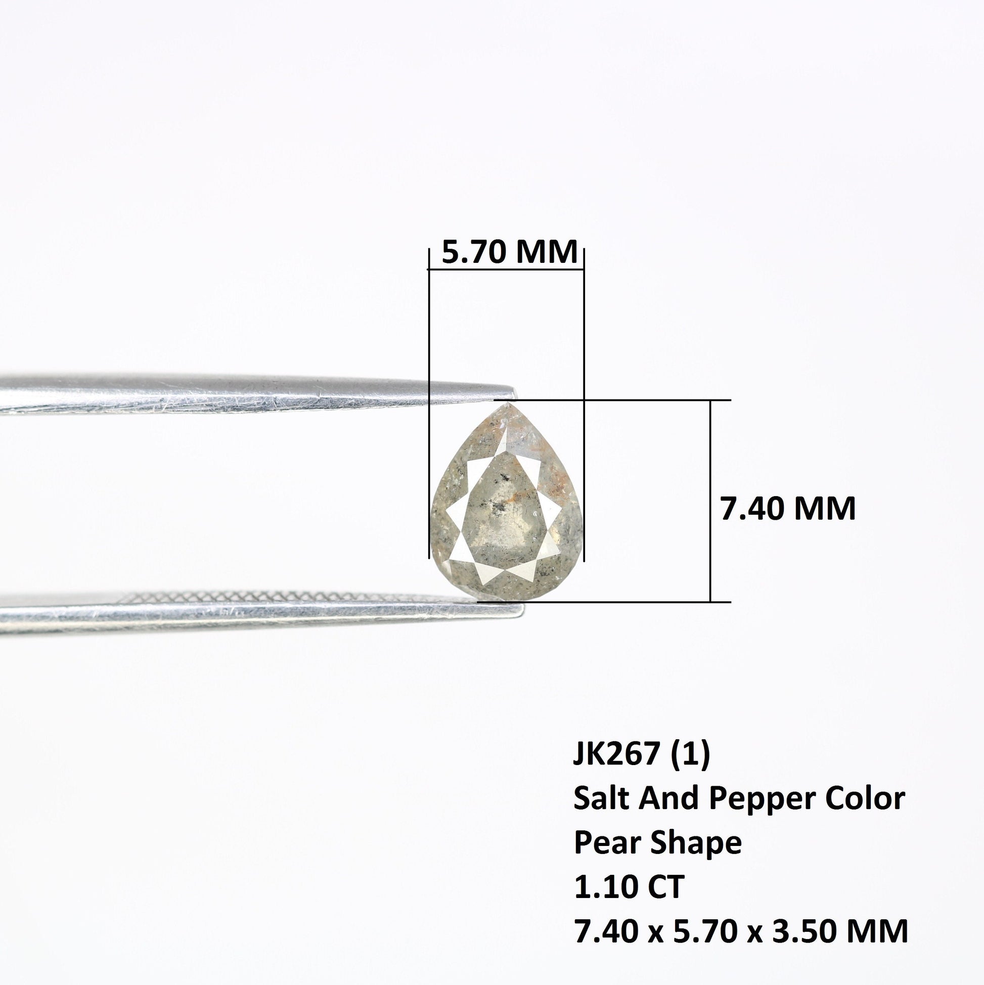 โฅ ๐๐ข๐๐ฆ๐จ๐ง๐๐ฌ ๐๐๐ญ๐๐ข๐ฅ๐ฌ ๐ Type :- Real Natural Loose Diamond Weight :- 1.1 Carat Shape :- Pear Size :- 7.40 x 5.70 x 3.50 Color :- Salt and Pepper Clarity :- I3 Pieces :- 1 pcs Treatment :- None (100 % Natural Diamond) Use :- Customize Ring / Engagement Ring and Wedding Rings๐๐จ๐ฐ ๐ญ๐จ ๐๐ซ๐๐๐ซ ๐๐ฎ๐ฌ๐ญ๐จ๐ฆ ๐๐๐ฐ๐๐ฅ๐ฅ๐๐ซ๐ฒ ?? Do you looking special and unique piece ? Do you have pictures, sketch or just idea ? Just Send Us! Let's design together and create the jewel of your dreams with best prices.Thank You so much for visiting my shop. https://rocksdiamond.etsy.comThank You For Reach out RocksDiamond rocksdiamond.etsy.com Hello Friends,Welcome to Rocks Diamond, the complete store of Natural and Salt Pepper Diamonds, Rough Diamonds, gemstones, beads and high quality jewelry supplies with therapeutic values. * How to Order* Browse Our Collection: Explore our range of natural diamonds, salt and pepper diamonds, gemstones, and handcrafted jewelry.Select Your Item: Click on your desired product to view details, including size, shape, and pricing.Add to Cart: Once you've made your selection, click "Add to Cart." You can adjust quantities or add additional items as needed.Checkout: When you're ready, click on your cart and proceed to checkout.Custom Orders Personalization Available: If youโd like a custom design or a specific gemstone, please contact us before placing your order.Consultation: Weโll work with you to understand your vision and provide a quote based on your requirements. Design Approval: Once we finalize the design, weโll send you a confirmation before beginning the crafting process.ShippingProcessing Time: Orders typically ship within [1-3 days]. Custom orders may take longer; weโll keep you updated on the timeline. Shipping Methods: We offer [standard/express] shipping options. Tracking information will be provided once your order ships. International Shipping: We happily ship worldwide. Please note that customs duties may apply depending on your location.Payment Secure Payments: We accept various payment methods, including credit/debit cards and PayPal, ensuring a safe and secure checkout experience. Payment Plans: For high-value items, we may offer flexible payment plans. Please inquire for details.Customer Support Questions? If you have any questions or need assistance, feel free to reach out via Etsy messages. Weโre here to help!Customer Satisfaction: Your happiness is our priority. If you have any concerns about your order, please contact us, and weโll do our best to resolve any issues. Thank you for choosing Rocks Diamond! We look forward to helping you find or create the perfect piece of jewelry.Thank you for Vist : rocksdiamond.etsy.comComplete your search for the perfect gift at RocksDiamond. Whether it's personalized gifts, elegant jewelry, or unique Christmas ornaments, our collection of natural diamonds offers something special for everyone. Ideal for gifts for him, birthday gifts, or the best gifts for her, every piece is crafted to make your moments unforgettable.