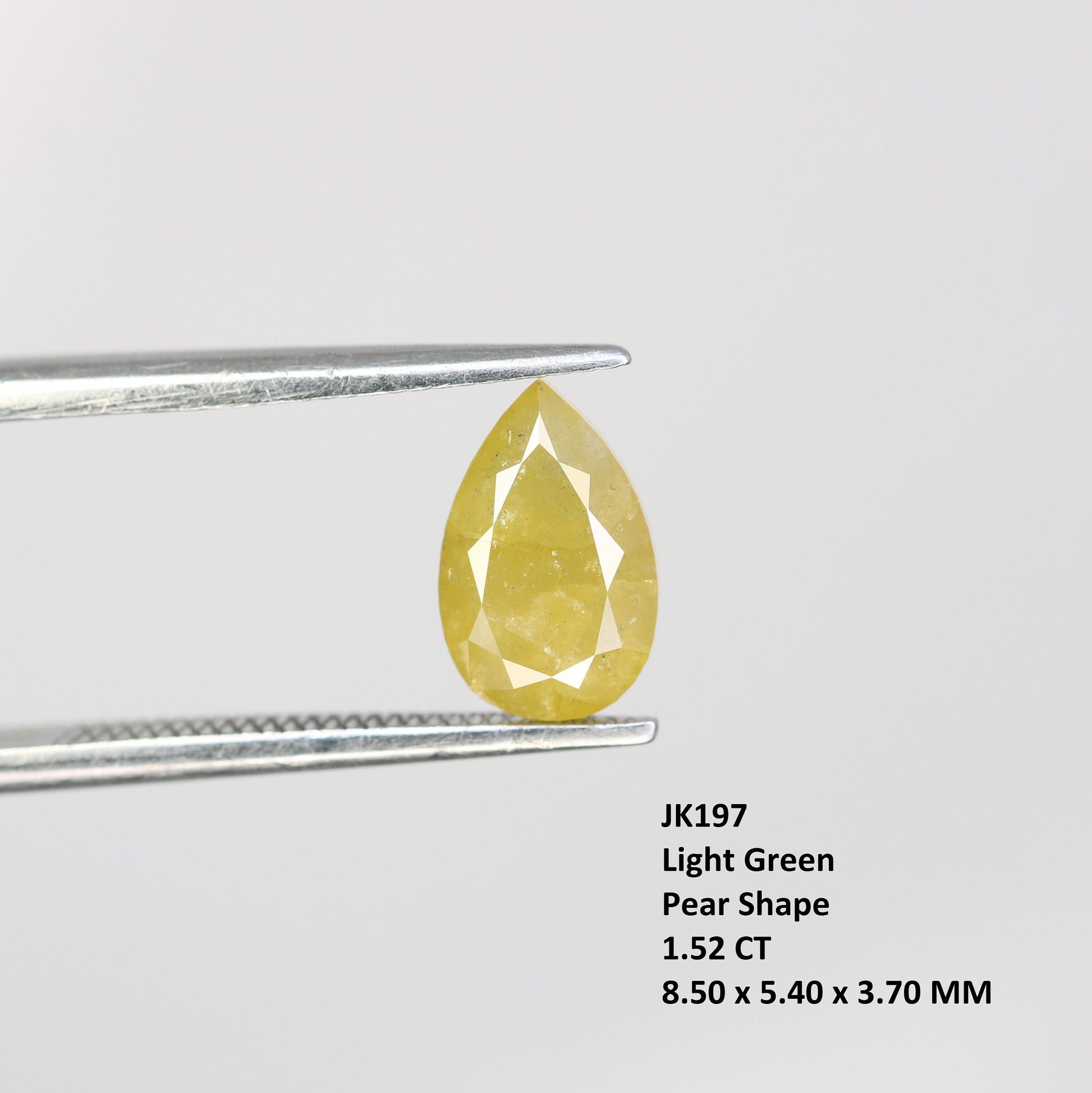 Type :- 100% Real Natural Diamond Shape :- Pear Weight :- 1.52 CT Color :- Light Green Size :- 8.50 x 5.40 x 3.70 MM Pieces :- 1 Pcs Loose Diamond Use :- Pear Light Green Diamond Engagement Ring https://rocksdiamond.etsy.comThank You For Reach out RocksDiamond rocksdiamond.etsy.com Hello Friends,Welcome to Rocks Diamond, the complete store of Natural and Salt Pepper Diamonds, Rough Diamonds, gemstones, beads and high quality jewelry supplies with therapeutic values. * How to Order* Browse Our Collection: Explore our range of natural diamonds, salt and pepper diamonds, gemstones, and handcrafted jewelry.Select Your Item: Click on your desired product to view details, including size, shape, and pricing.Add to Cart: Once you've made your selection, click "Add to Cart." You can adjust quantities or add additional items as needed.Checkout: When you're ready, click on your cart and proceed to checkout.Custom Orders Personalization Available: If youβd like a custom design or a specific gemstone, please contact us before placing your order.Consultation: Weβll work with you to understand your vision and provide a quote based on your requirements. Design Approval: Once we finalize the design, weβll send you a confirmation before beginning the crafting process.ShippingProcessing Time: Orders typically ship within [1-3 days]. Custom orders may take longer; weβll keep you updated on the timeline. Shipping Methods: We offer [standard/express] shipping options. Tracking information will be provided once your order ships. International Shipping: We happily ship worldwide. Please note that customs duties may apply depending on your location.Payment Secure Payments: We accept various payment methods, including credit/debit cards and PayPal, ensuring a safe and secure checkout experience. Payment Plans: For high-value items, we may offer flexible payment plans. Please inquire for details.Customer Support Questions? If you have any questions or need assistance, feel free to reach out via Etsy messages. Weβre here to help!Customer Satisfaction: Your happiness is our priority. If you have any concerns about your order, please contact us, and weβll do our best to resolve any issues. Thank you for choosing Rocks Diamond! We look forward to helping you find or create the perfect piece of jewelry.Thank you for Vist : rocksdiamond.etsy.comComplete your search for the perfect gift at RocksDiamond. Whether it's personalized gifts, elegant jewelry, or unique Christmas ornaments, our collection of natural diamonds offers something special for everyone. Ideal for gifts for him, birthday gifts, or the best gifts for her, every piece is crafted to make your moments unforgettable.