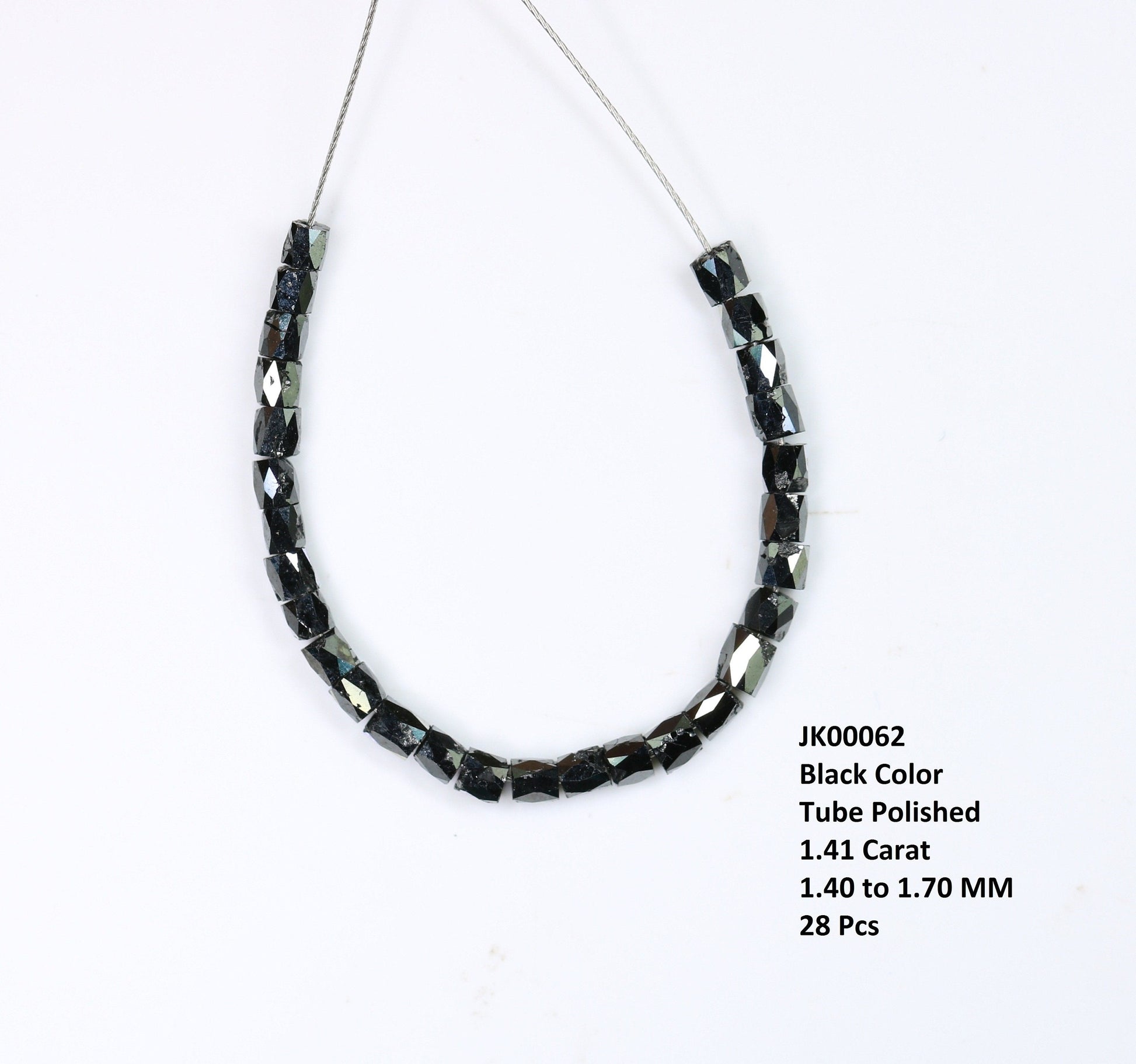 This diamonds originates from Africa and is conflict free.Item Specifications:- Type:- 100% Natural Diamond Beads Shape:- Tube Size:- 1.40 To 1.70 MM Carat:- 1.41 Carat Color:- Black Clarity:- Opaque Cut:- Good Pieces Of Number :- 28 pcs Treatment:-100 % Natural Diamond ๐๐จ๐ฐ ๐ญ๐จ ๐๐ซ๐๐๐ซ ๐๐ฎ๐ฌ๐ญ๐จ๐ฆ ๐๐๐ฐ๐๐ฅ๐ฅ๐๐ซ๐ฒ ??Do you looking special and unique piece ? Do you have pictures, sketch or just idea ? Just Send Us! Let's design together and create the jewel of your dreams with best prices. We will make the first cad design for you and sent it to you for confirmation. After confirming your Cad design, we again sent it to the making jewelry factory. After Ready jewelry, we will send you a ready jewelry photo for confirmation and ship it to you. ๐ฝ๐๐๐๐ ๐บ๐๐๐๐ :- https://www.etsy.com/shop/RocksdiamondThank You so much..... Kind Regards, Rocksdiamond Team https://rocksdiamond.etsy.comThank You For Reach out RocksDiamond rocksdiamond.etsy.com Hello Friends,Welcome to Rocks Diamond, the complete store of Natural and Salt Pepper Diamonds, Rough Diamonds, gemstones, beads and high quality jewelry supplies with therapeutic values. * How to Order* Browse Our Collection: Explore our range of natural diamonds, salt and pepper diamonds, gemstones, and handcrafted jewelry.Select Your Item: Click on your desired product to view details, including size, shape, and pricing.Add to Cart: Once you've made your selection, click "Add to Cart." You can adjust quantities or add additional items as needed.Checkout: When you're ready, click on your cart and proceed to checkout.Custom Orders Personalization Available: If youโd like a custom design or a specific gemstone, please contact us before placing your order.Consultation: Weโll work with you to understand your vision and provide a quote based on your requirements. Design Approval: Once we finalize the design, weโll send you a confirmation before beginning the crafting process.ShippingProcessing Time: Orders typically ship within [1-3 days]. Custom orders may take longer; weโll keep you updated on the timeline. Shipping Methods: We offer [standard/express] shipping options. Tracking information will be provided once your order ships. International Shipping: We happily ship worldwide. Please note that customs duties may apply depending on your location.Payment Secure Payments: We accept various payment methods, including credit/debit cards and PayPal, ensuring a safe and secure checkout experience. Payment Plans: For high-value items, we may offer flexible payment plans. Please inquire for details.Customer Support Questions? If you have any questions or need assistance, feel free to reach out via Etsy messages. Weโre here to help!Customer Satisfaction: Your happiness is our priority. If you have any concerns about your order, please contact us, and weโll do our best to resolve any issues. Thank you for choosing Rocks Diamond! We look forward to helping you find or create the perfect piece of jewelry.Thank you for Vist : rocksdiamond.etsy.comComplete your search for the perfect gift at RocksDiamond. Whether it's personalized gifts, elegant jewelry, or unique Christmas ornaments, our collection of natural diamonds offers something special for everyone. Ideal for gifts for him, birthday gifts, or the best gifts for her, every piece is crafted to make your moments unforgettable.