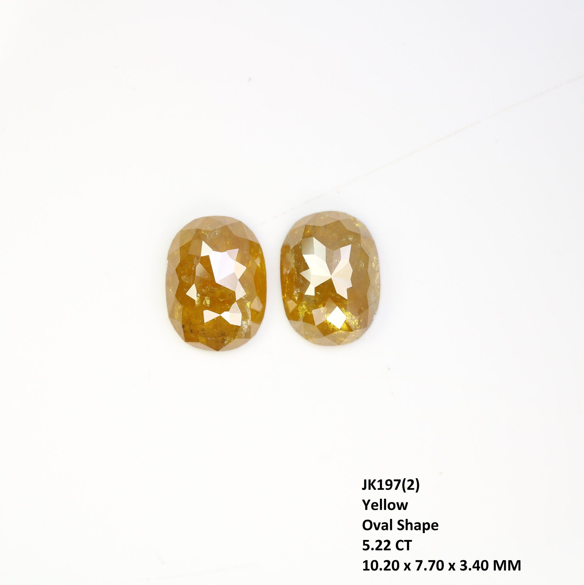 β₯ ππ’ππ¦π¨π§π πππππ’π₯π¬ π Type :- 100% Real Natural Diamond Shape :- Oval Weight :- 5.22 Carat Color :- Yellow Size :- 10.20*7.70*3.40 MM Pieces :- Pair Loose Diamond Use :- Engagement Ring, Designer Jewelry, Earrings https://rocksdiamond.etsy.comThank You For Reach out RocksDiamond rocksdiamond.etsy.com Hello Friends,Welcome to Rocks Diamond, the complete store of Natural and Salt Pepper Diamonds, Rough Diamonds, gemstones, beads and high quality jewelry supplies with therapeutic values. * How to Order* Browse Our Collection: Explore our range of natural diamonds, salt and pepper diamonds, gemstones, and handcrafted jewelry.Select Your Item: Click on your desired product to view details, including size, shape, and pricing.Add to Cart: Once you've made your selection, click "Add to Cart." You can adjust quantities or add additional items as needed.Checkout: When you're ready, click on your cart and proceed to checkout.Custom Orders Personalization Available: If youβd like a custom design or a specific gemstone, please contact us before placing your order.Consultation: Weβll work with you to understand your vision and provide a quote based on your requirements. Design Approval: Once we finalize the design, weβll send you a confirmation before beginning the crafting process.ShippingProcessing Time: Orders typically ship within [1-3 days]. Custom orders may take longer; weβll keep you updated on the timeline. Shipping Methods: We offer [standard/express] shipping options. Tracking information will be provided once your order ships. International Shipping: We happily ship worldwide. Please note that customs duties may apply depending on your location.Payment Secure Payments: We accept various payment methods, including credit/debit cards and PayPal, ensuring a safe and secure checkout experience. Payment Plans: For high-value items, we may offer flexible payment plans. Please inquire for details.Customer Support Questions? If you have any questions or need assistance, feel free to reach out via Etsy messages. Weβre here to help!Customer Satisfaction: Your happiness is our priority. If you have any concerns about your order, please contact us, and weβll do our best to resolve any issues. Thank you for choosing Rocks Diamond! We look forward to helping you find or create the perfect piece of jewelry.Thank you for Vist : rocksdiamond.etsy.comComplete your search for the perfect gift at RocksDiamond. Whether it's personalized gifts, elegant jewelry, or unique Christmas ornaments, our collection of natural diamonds offers something special for everyone. Ideal for gifts for him, birthday gifts, or the best gifts for her, every piece is crafted to make your moments unforgettable.